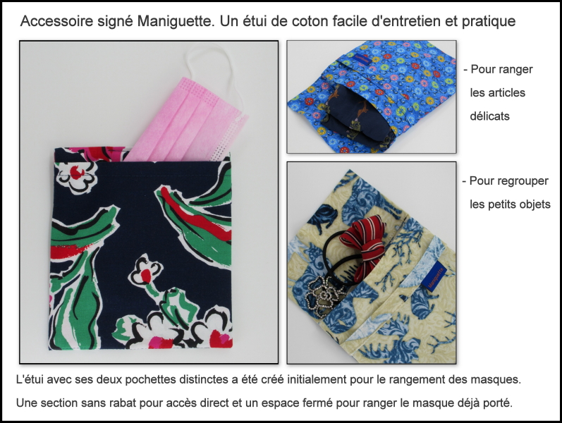 L’étui possède deux espaces de rangement, utile pour loger votre masque, pour regrouper des petits objets dans un bagage ou pour y glisser un vêtement fin et délicat.